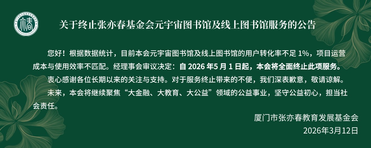 关于终止张亦春基金会元宇宙图书馆及线上图书馆服务的公告